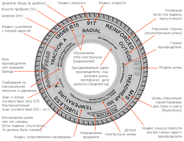 В этом разделе мы поможем вам разобраться, как маркируются шины и расскажем, что означают надписи на боковине шины.